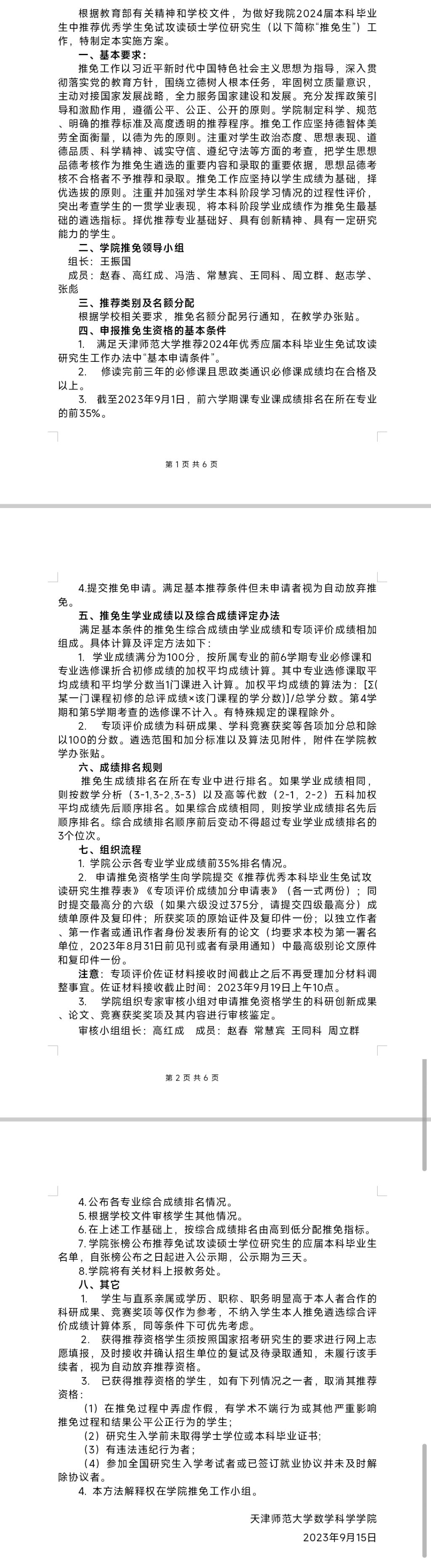 数学学院2024届优秀本科毕业生免试攻读硕士学位研究生工作实施办法