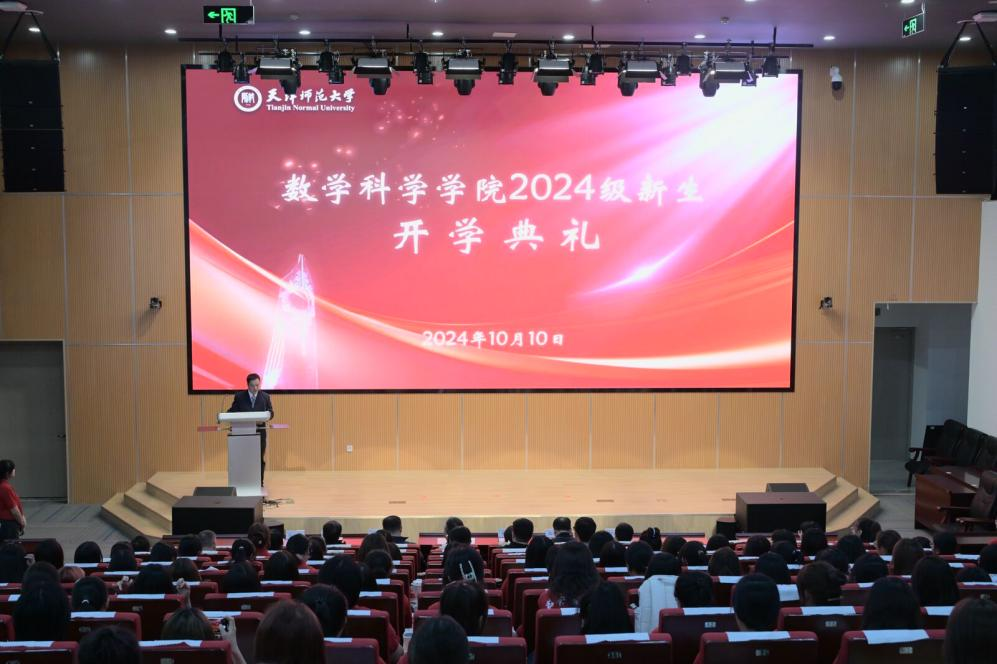 数学科学学院消息(通讯员 上官萌萌)10月10日晚,数学科学学院2024级新生开学典礼暨“身边有你好幸运”表彰会在京津冀教师发展协同创新中心报告厅举行。学院领导班子成员张宁、常慧宾、彭永刚、高红成、胡中华,教师代表王同科、张彪、赵志学,专业教师代表、辅导员、新生班主任和全体新生参加典礼。典礼由学院党委副书记彭永刚主持。
