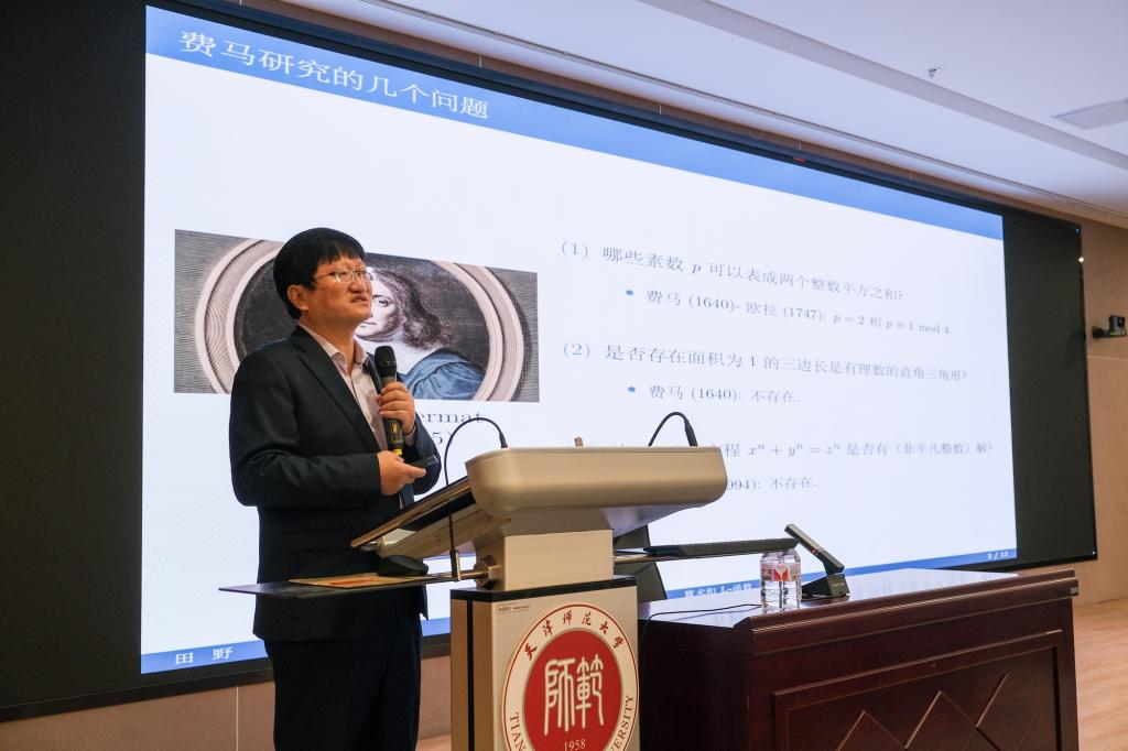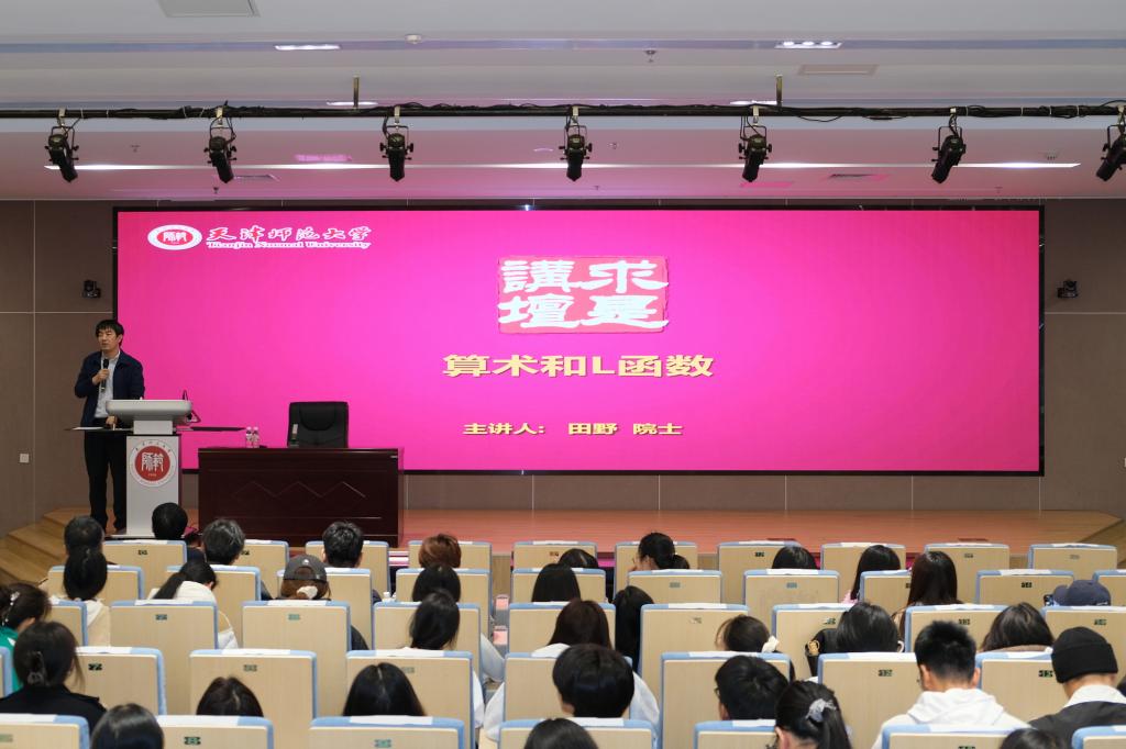 11月10日上午,由天津师范大学研究生院和数学科学学院联合举办的求是讲坛在京津冀协同创新中心B座小报告厅成功召开。本次讲坛邀请中国科学院数学与系统科学研究院田野院士作了题为《算术和L函数》的学术讲座。校党委常委、副校长佟德志主持本次讲坛,数学科学学院、教育学部、物理与材料科学学院、电子与通信工程学院、计算机与信息工程学院师生代表近200人参加。