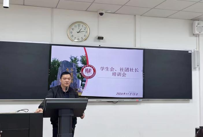 郭老师围绕“学生干部身份的转变、学生骨干的主要责任、后备力量的培养及对部门工作的建议”四个方面展开此次培训。他强调,学生干部需从“参与者”转变为“组织者”,以更高的责任感和全局视角对待工作。对于学院活动的开展,既要做好自身部门的工作,也要关注其他部门的动态,积极组织和协调各部门的分工合作,切实提升整体工作的效率与质量。同时,郭老师建议学生干部通过实践活动和小型项目来观察和锻炼潜在骨干的能力,定期开展部门例会,关心部员们是否平衡好学习与工作,增加与部员们的沟通交流,以促进学生会及社团的凝聚力。