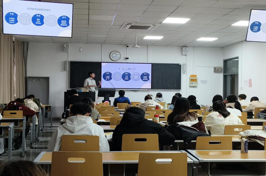 10月31日下午,学院在博理楼B100举办了ky开云手机版“天津市2025年教师招聘规律机遇及趋势展望”就业指导会,邀请志鼎教育培训学校资深考情专家——苗雯月老师进行讲解。苗雯月老师围绕“2024年天津市教师编制考情”进行深入剖析,他结合自己多年工作经验,综合分析出2024年考编规律及2025年考情分析,向同学们分享了区招最新报考条件规律等。讲座中,苗老师与同学们积极交流互动,现场气氛十分活跃。