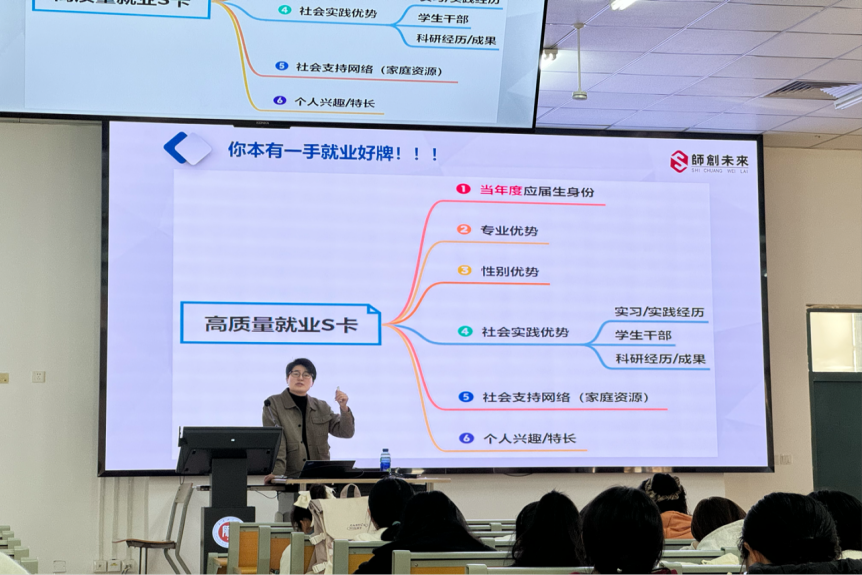 11年6日下午,学院在劝B115举办“职点迷津 遇见未来”——公职就业资讯分享会,邀请师创未来教育公职项目师资负责人罗巧慧作为主讲老师。罗老师立足数学专业的专业特色,根据学生自身特点和社会职业需要,有针对性地帮助学生做好公职就业准备。同时,罗老师以深入浅出的方式,为同学们剖析了公招公考的各个环节,从公招公考的基本介绍、考试类型、报考条件等,到深入解读考试大纲、分析历年真题,为同学们提供一系列实用的备考策略和复习技巧。