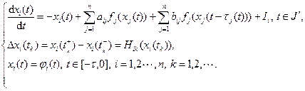 考虑如下具变时滞脉冲 Hopfield 神经网络模型