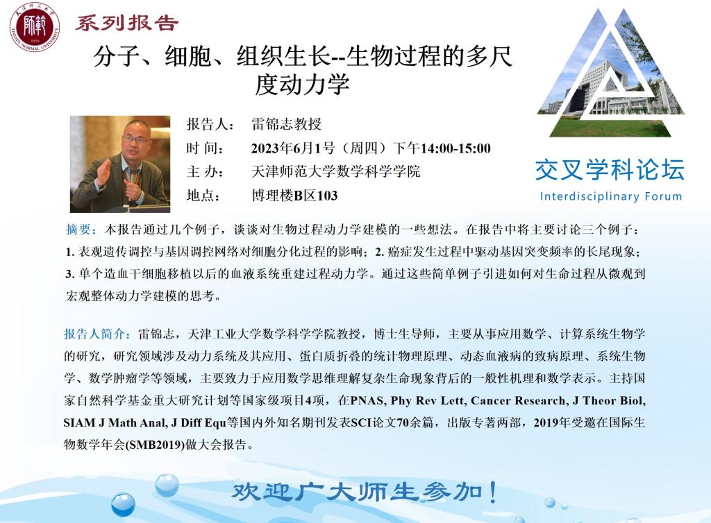 【预告】学术报告(2023-7)6月1日——分子、细胞、组织生长——生物过程的多尺度动力学