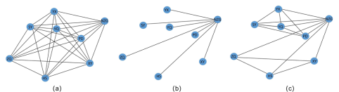 1 三种图结构:完全图(a)、信息流图(b)和地下水流场图(c)