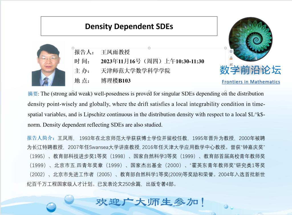 【预告】学术报告(2023-36)11月16日—Density Dependent SDEs