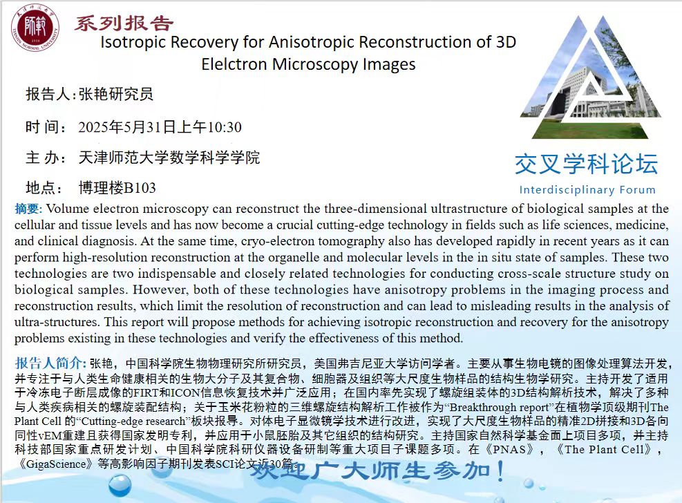【预告】学术报告(2025-22)5月31日——Isotropic Recovery for Anisotropic Reconstruction of 3DDElelctron Microscopy Images