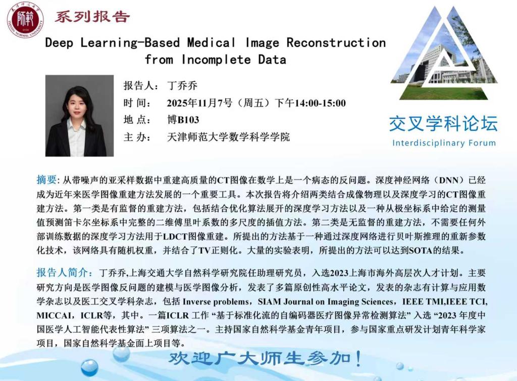 【预告】学术报告(2025-46)11月7日-Deep Learning-Based Medical Image Reconstructionfrom Incomplete Data
