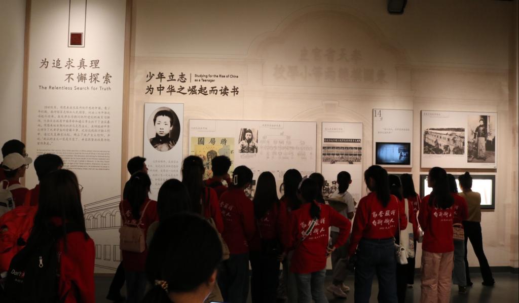 在讲解员的带领下,同学们参观了“人民总理周恩来”和“邓颖超——20世纪中国妇女运动的先驱”主题展览。数百件珍贵文献,历史照片和各类影像资料体现出为中华之崛起而读书的远大志向和周总理全心全意为人民服务的优良品格。大家时而在展品前驻足观看,细细品味周恩来总理和夫人邓颖超同志,从立志救国、从事建党等早期革命活动到新中国建立后肩负党政要职、为促进民族团结、国家发展以及世界和平作出不朽贡献的重要历程,体悟两位伟人崇高的精神追求。
