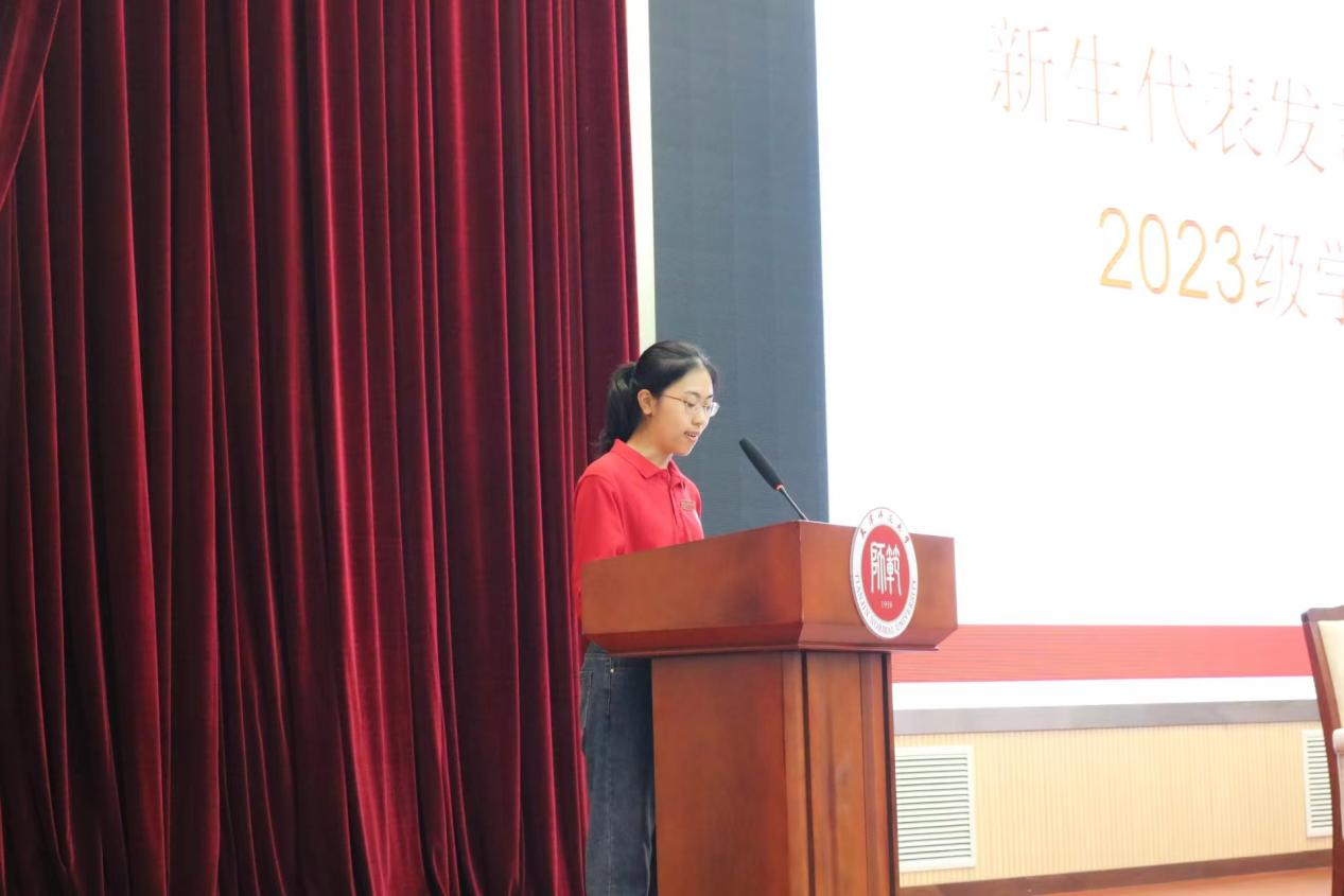 王书记向新生提出三点希望:一是紧紧抓住时代赋予的使命,紧跟时代浪潮,做对社会有用的人才。二是始终牢记幸福是奋斗出来的。三是及时转换角色,适应大学生活,并对大学四年生涯作出规划。希望同学们坚定信念,在实践中不断砥砺前行,在奋进中遇见更好的自己,勇于承担推进新时代中国特色社会主义发展的责任,把自己的发展融入中华民族伟大复兴和构建命运人类共同体之中去! 学院副院长高红成教授,教师代表、校级教学名师张艳艳老师,2021级数学与应用数学(师范)专业学生代表曹佳奕,2023级数学与应用数学(师范)专业新生代表高源分别发言。