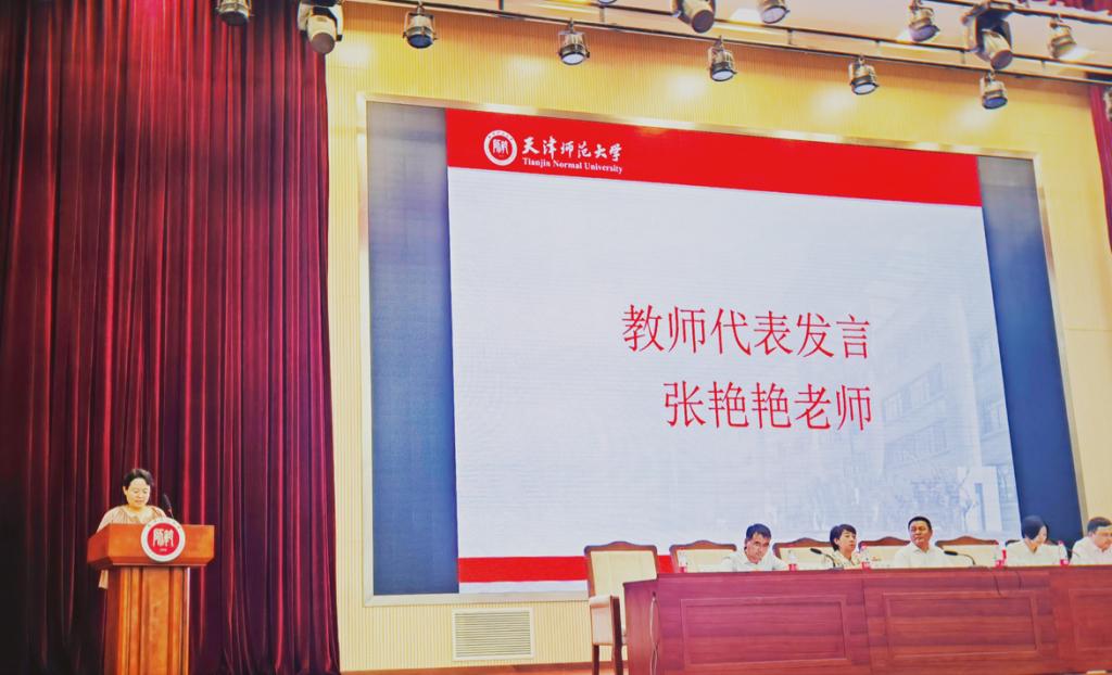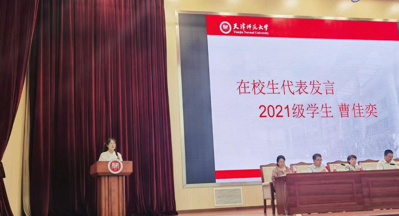 典礼上,王振国老师在讲话中向2023级新生表示祝贺。他指出要秉持天津师范大学校训,传承师范要义,树立正确的人生观、价值观、世界观。