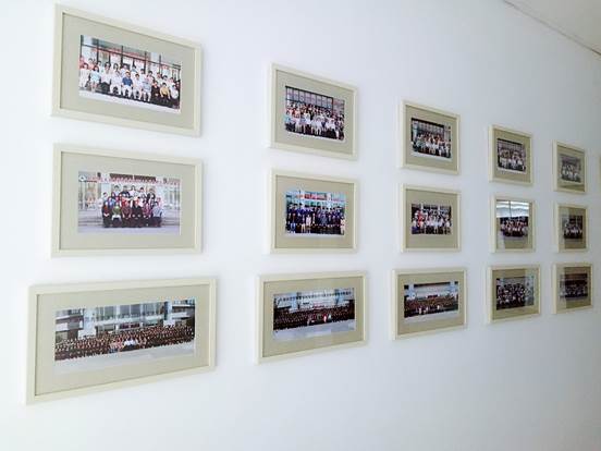 谈及毕业照文化长廊的灵感,洪德全副院长这样说:“学院正在整理院校历史,最终的目的是要把从1958年到现在五十九年的院史全部整理出来。在收集整理过程中,找到了一部分老照片,这些老照片独有的苍老感给人一种心灵的震撼。创建毕业照文化长廊,其实就是给离开学校的校友找到了一个家。当他们回到学校的时候,看到老照片一定也会很兴奋,学院本身就是一个大家,不仅要凝聚在校的学生、老师,还要凝聚所有的数学人。数学科学学院有一句话:一日是数学人,终生是数学人。毕业照文化长廊也是联系校友的纽带之一。我们已经陆续整理出从七十年代开始的82个班级合照,相信有一天我们会收集全所有的校友毕业照片。”
